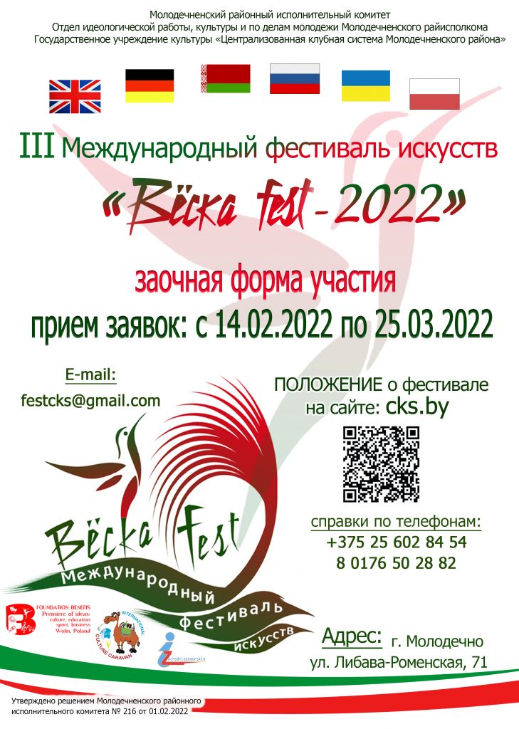 СОБЫТИЯ До окончания приема заявок на заочную форму III Международного фестиваля искусств «Вёска fest–2022» остались считанные дни 16 марта, 2022225 просмотров