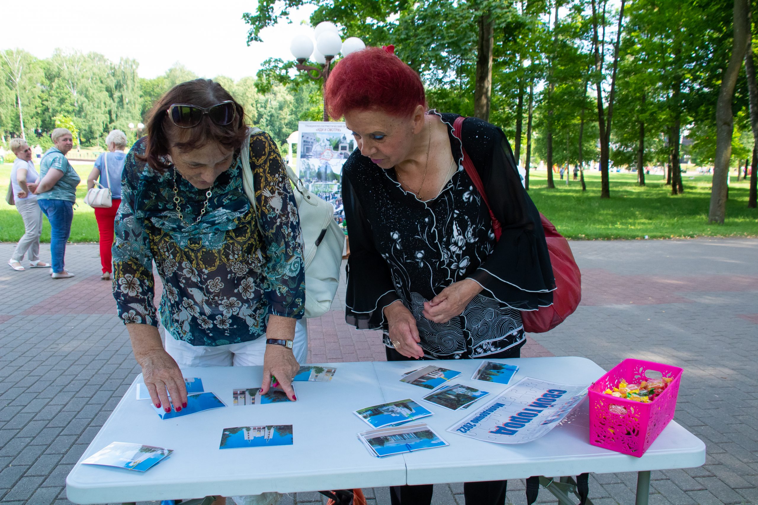 В парке культуры и отдыха имени Победы города Молодечно возле центрального входа работают площадки от ГУК «Централизованная клубная система Молодечненского района»: площадка совместного творчества для детей и взрослых «Картонный город», выставка «Дороги памяти: Городок в годы Великой Отечественной войны» в рамках проекта «Иди и смотри», фотозона «Лавка для влюблённых», площадка «Собери свой город»