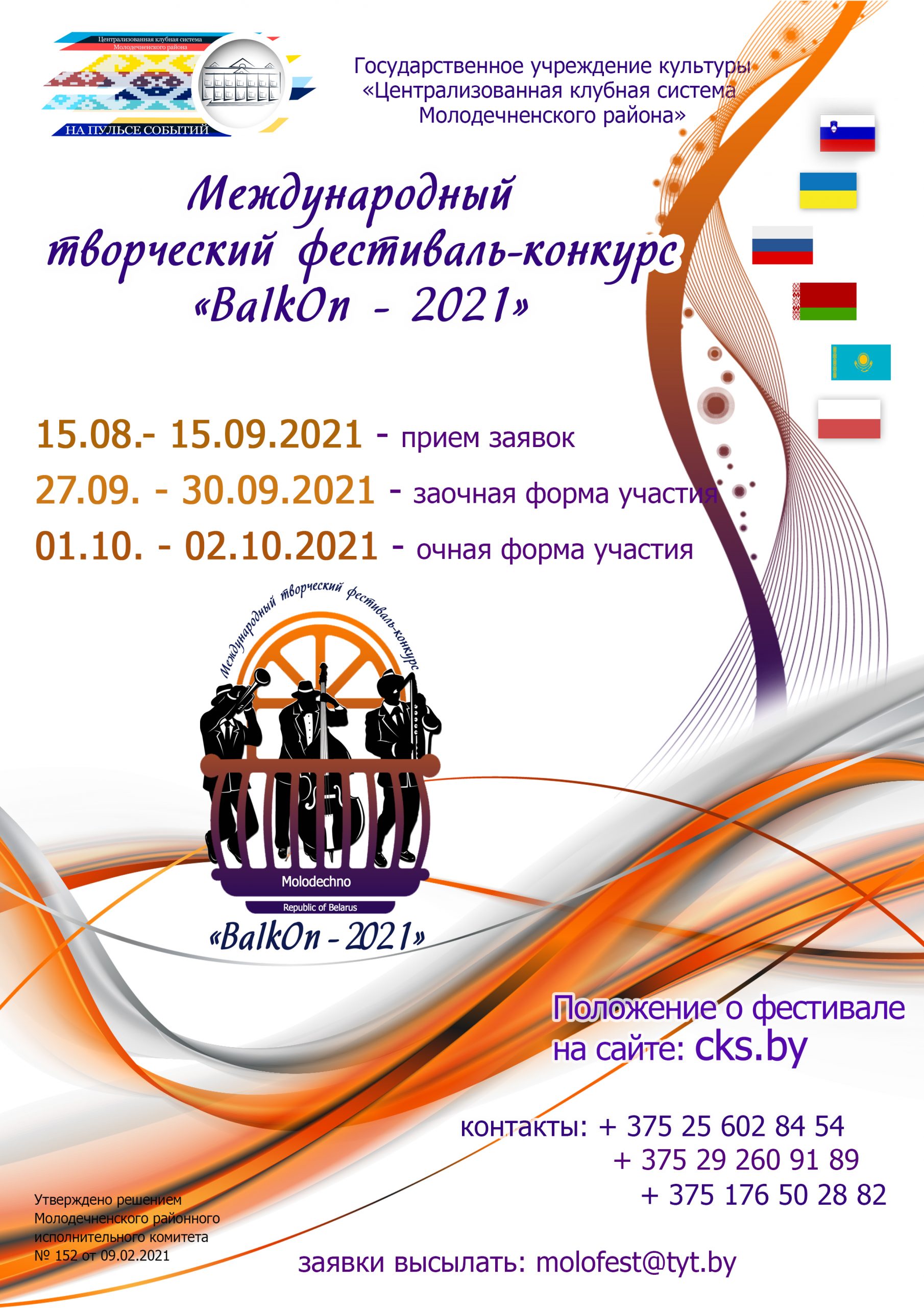 СОБЫТИЯ BalkOn — 2021 16 августа, 2021362 просмотров Открыт приём заявок на участие вo II Международном творческом фестивале -конкурсе «BalkOn – 2021»